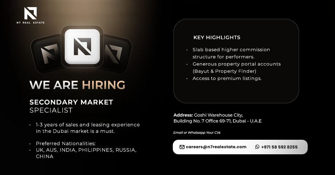 N7 Real Estate is seeking dynamic Secondary Market Specialists who can match buyers with premium ready properties and capitalize on the shift toward homeownership and end-user demand.
